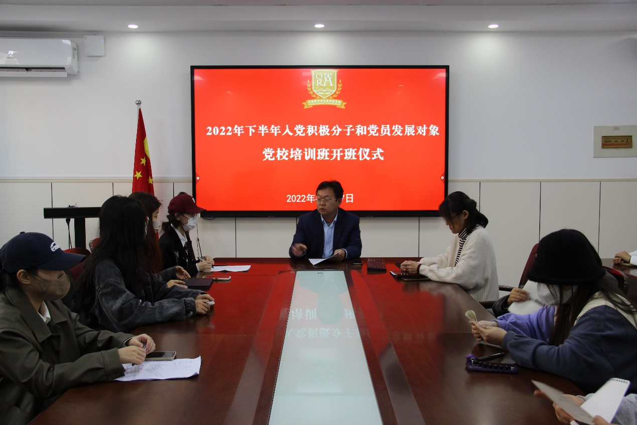10月27日,太阳成集团tyc122cc于教学楼G205举办入党积极分子和党员发展对象党校培训班开班仪式。开班仪式由公司团委书记刘璐主持,公司党委书记刘焕奇出席,公司六名党员发展对象,十八名入党积极分子参加。