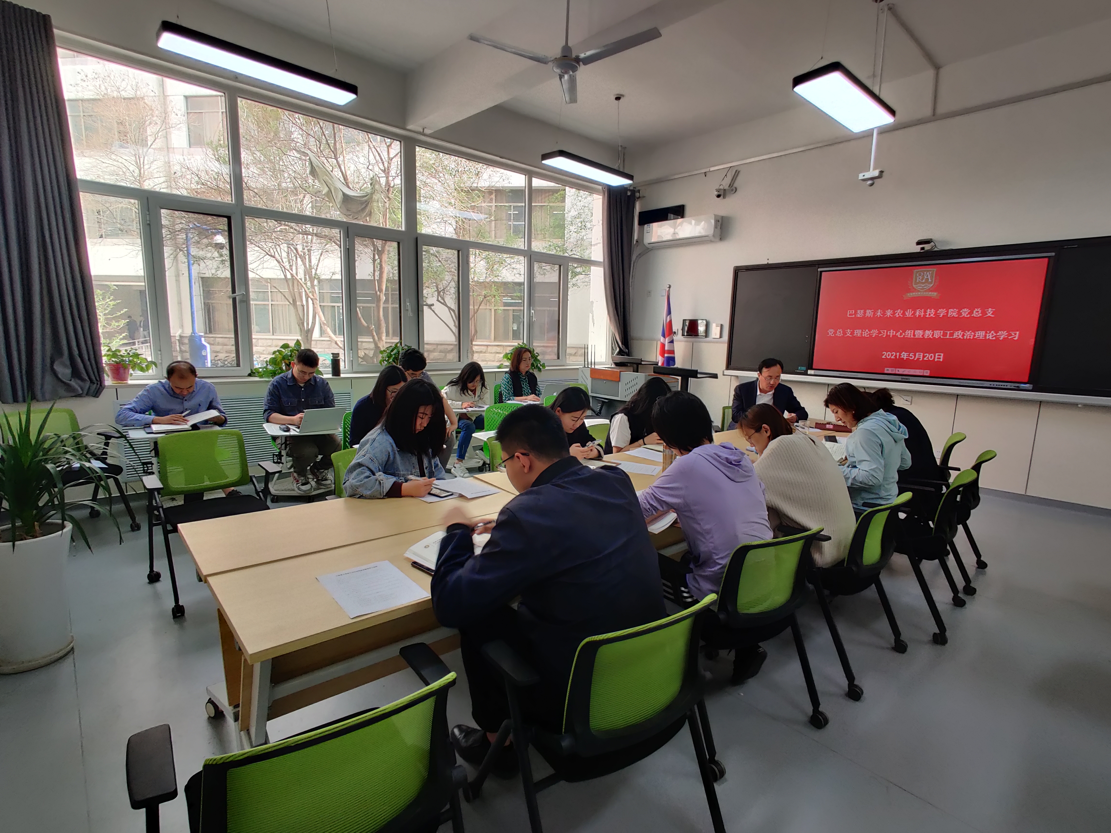 5月20日下午,太阳成集团tyc122cc于教学楼F105开展党总支理论学习中心组暨教职工政治理论学习。会议由公司党总支负责人吕玉亭主持,全体教职工及综合英语教师参加。