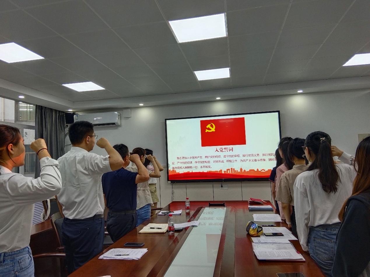 最后,全体党员面向党旗,重温入党誓词,进一步增强了党支部的凝聚力和战斗力,激发了全体党员的荣誉感、责任感和使命感。