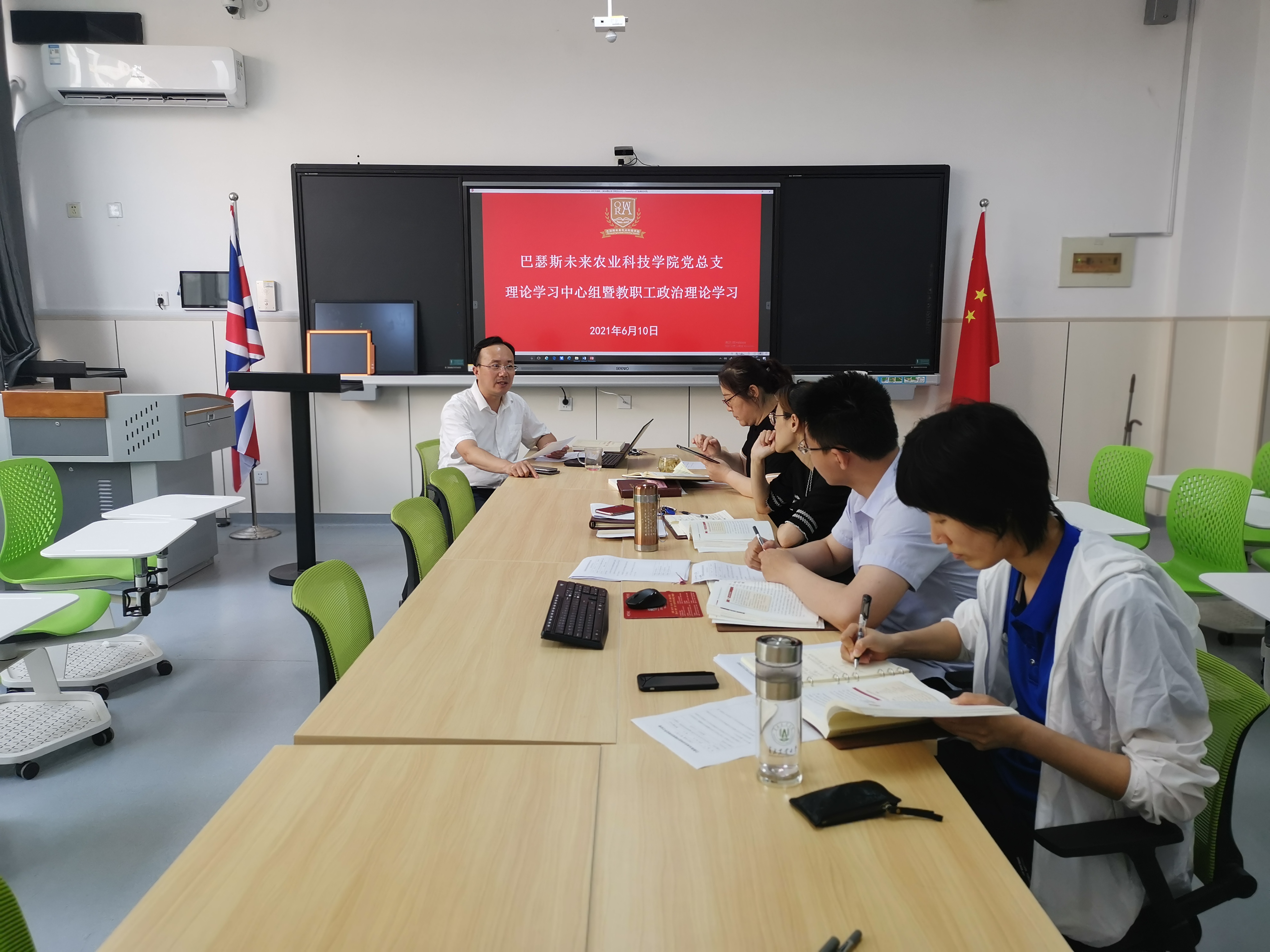 6月10日下午,太阳成集团tyc122cc于教学楼F105开展党总支理论学习中心组暨教职工政治理论学习。会议由公司党总支负责人吕玉亭主持,全体教职工及综合英语教师参加。