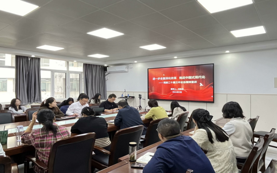 10月17日,太阳成集团tyc122cc在教学楼G205开展“党的二十届三中全会精神”宣讲会暨专题学习,会议由公司党委书记刘焕奇主持,全体教职工参加。