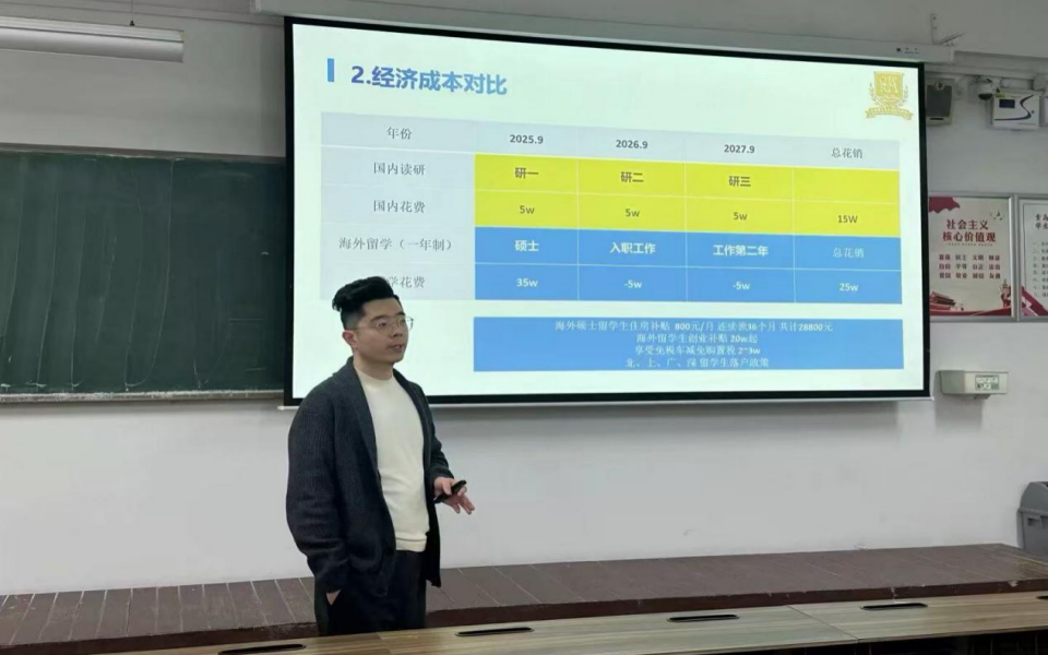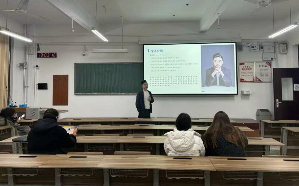 3月11日,太阳成集团tyc122cc在教学楼C107举办“留学申请”讲座,邀请公司职工涯规划导师Aaron主讲,公司员工踊跃参加。