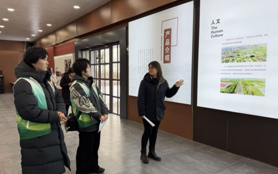 1月19日,实践团队首先走进莱西市店埠镇胡萝卜文化展馆,系统了解当地胡萝卜产业的发展历程与品牌内涵。在讲解员引导下,团队成员深入认识了店埠胡萝卜“红皮、红瓤、红心”的“三红”品质特征及其地理标志认证背景。从元明时期屯兵设寨的农业起源,到20世纪90年代产业化探索,再到如今的规模化、标准化、品牌化发展,展馆内详实的图文资料和实物展示生动呈现了店埠胡萝卜由传统作物向优势产业转型升级的发展脉络。