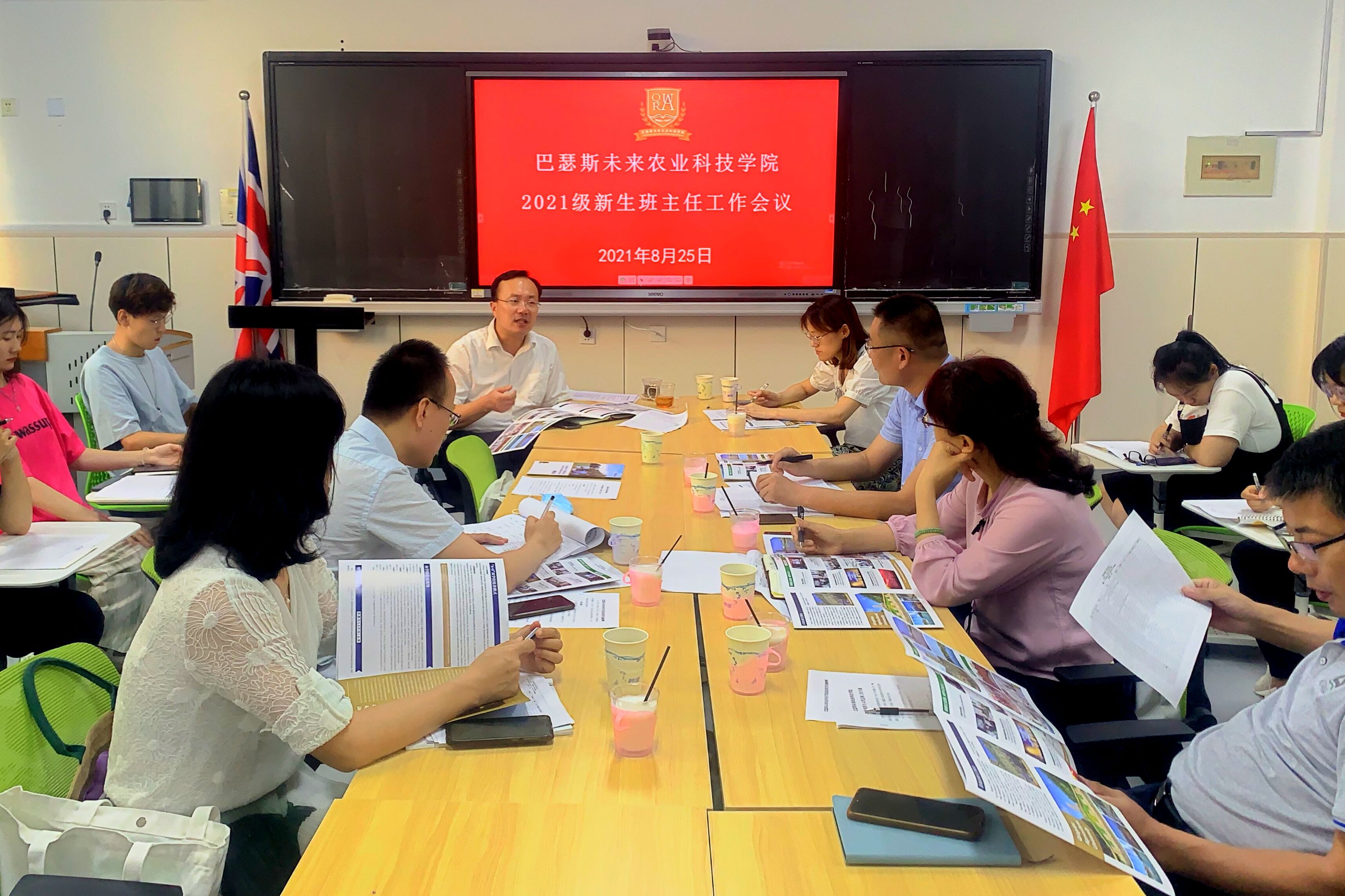 刘璐讲解了分班原则、轮值班委模式、迎新和入学教育具体安排,并表示公司作为中外合作办学公司,是各项工作创新的试验田,希望在公司和班主任的共同努力下,公司员工工作能够有温度、有效度、有力度、有亮度。