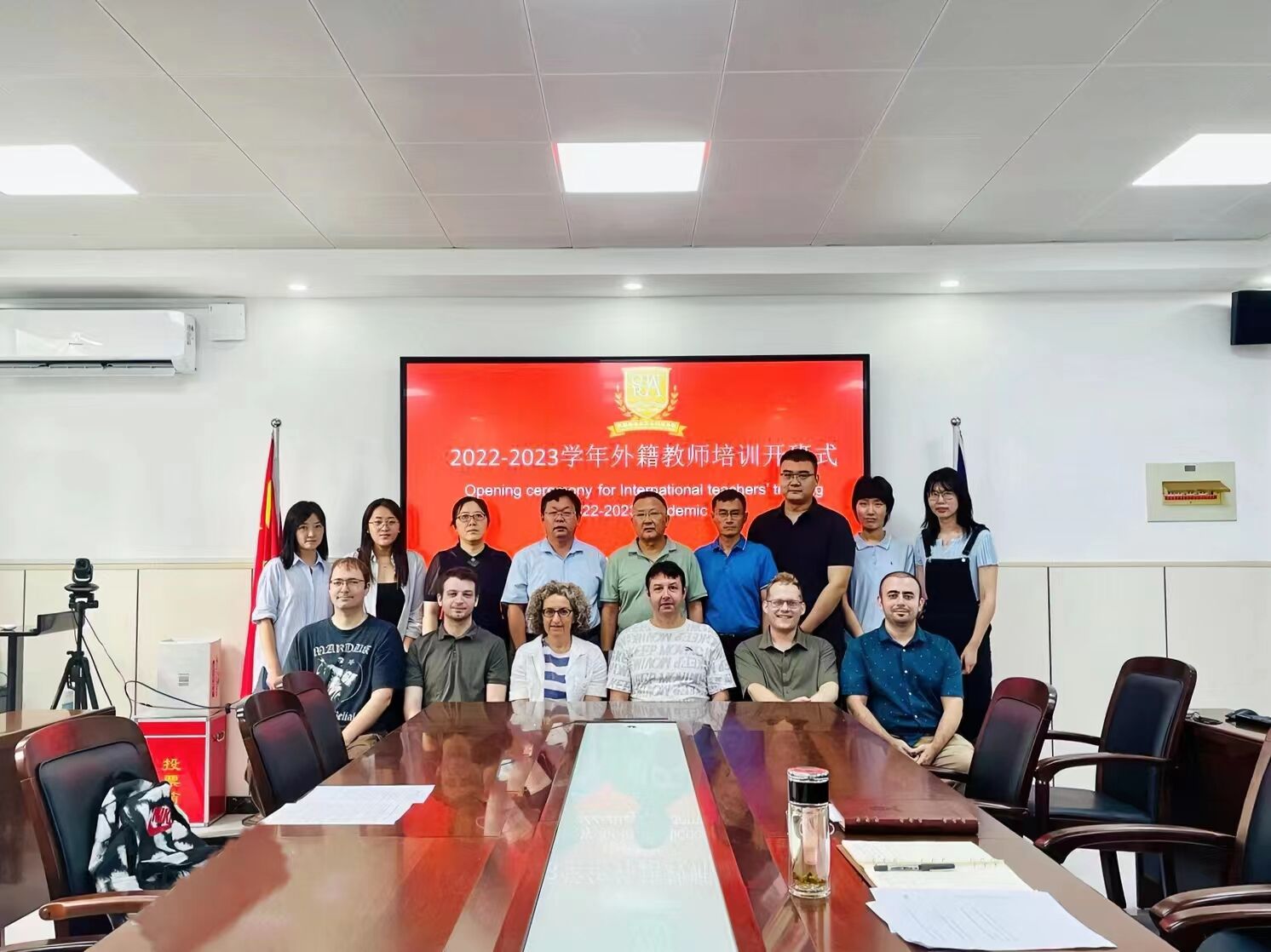 8月26日上午,太阳成集团tyc122cc在教学楼G205召开2022年度第二学期外籍教师培训暨意识形态专题工作部署会议,公司党总支书记刘焕奇、经理郑丹、副经理陈海华、国际合作交流处副处长王磊、出入境管理科副科长薛文声出席,公司全体外籍教师、RAU驻公司专员参加,会议由郑丹主持。