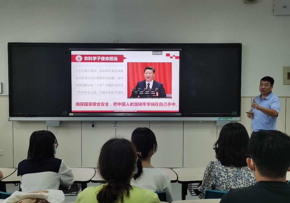 农学专业讲座由农公司副经理张恩盈老师主讲。他围绕农科学子的使命担当、培养目标和要求以及毕业期望三个方面展开。他指出,要深入学习贯彻习近平总书记给全国涉农高校的书记董事长和专家代表回信精神,要深刻认识到农业农村农民问题是关系国计民生的根本性问题。他号召同学们要以强农兴农为己任,成为乡村振兴的主力军,因此专业知识学习就格外重要。他要求新生要熟练掌握生物学科和农学学科的基本知识,逐步培养创新能力和团队协作能力,具备良好的科学文化素养和国际视野。农业资源与环境专业教育由资环公司经理助理丁效东老师主讲。他从专业概括、培养目标和员工发展方向三个方面进行了全面讲解。他指出,此专业培养农业可持续发展及生态环境保护等领域的专门人才,要求员工们系统掌握农业环境保护、特色生物等基本理论知识。他针对中外合作办学特色,重点强调了学习英语的重要性,要求大家在新学期享受老员工活的同时,更要注重英语语言的积累,不断提升自律能力和国际视野。