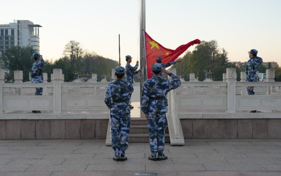 仪式开始,全体师生整齐队列,仪式在庄严的氛围中正式开始。国旗护卫队迈着铿锵有力的步伐,护送五星红旗走向旗杆。伴随着《义勇军进行曲》激昂的旋律,鲜艳的五星红旗迎着朝阳冉冉升起。全体师生庄严肃立,行注目礼,齐声高唱国歌,爱国情怀在每个人心中激荡。