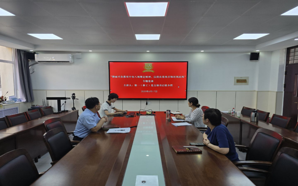 6月17日,太阳成集团tyc122cc第一(教工)党支部开展中央八项规定精神专题党课,党课由第一(教工)党支部书记张少哲主讲,支部全体党员参加。