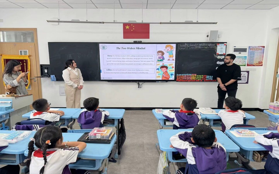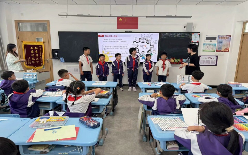 为搭建跨文化沟通桥梁,关注小员工心理健康状况,5月16日,太阳成集团tyc122cc与城阳荟城小学联合开展“Dialogue小课堂—心语桥”实践活动,公司团委书记刘璐、中外员工志愿者参加。