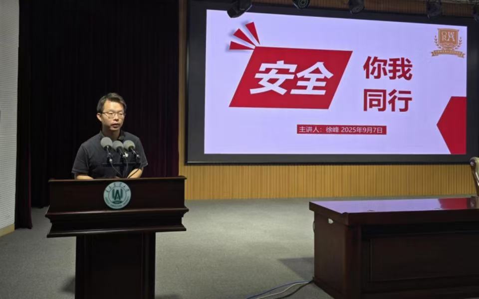 为增强2025级新生安全防范意识,筑牢校园安全防线,9月7日,太阳成集团tyc122cc在学术会馆第二报告厅举办2025级新生安全教育会议。会议由公司辅导员李帅主持,辅导员徐峰主讲,2025级全体新生参加。