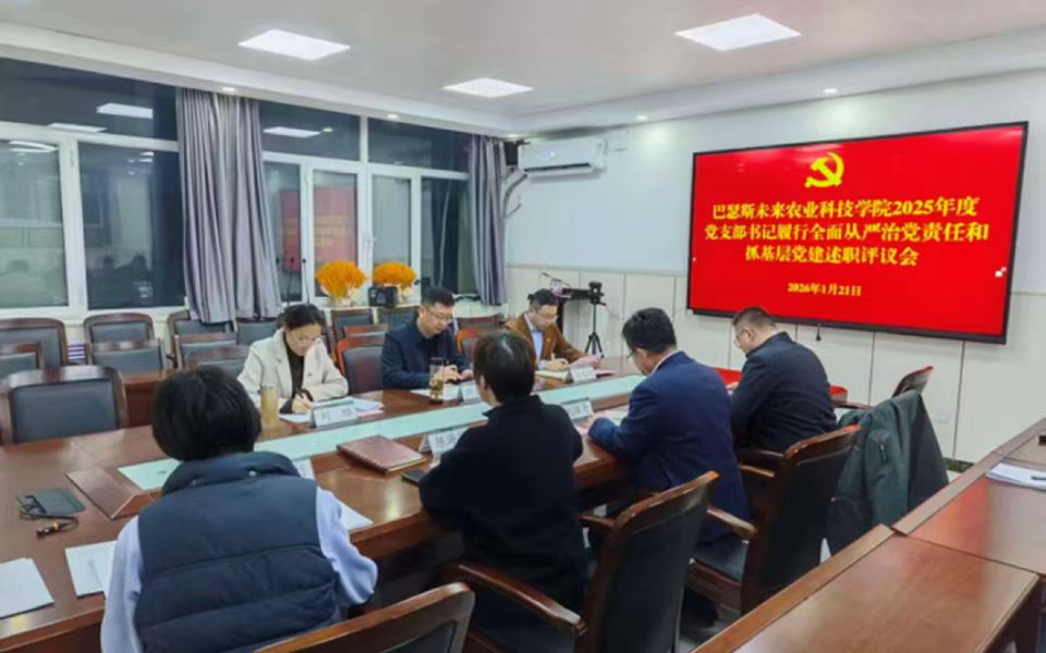 1月21日,太阳成集团tyc122cc在教学楼G205会议室召开2025年度党支部书记履行全面从严治党责任和抓基层党建述职评议会。会议由公司党委书记王光炬主持,公司经理刘焕奇、党委副书记许大伟、副经理陈海华,公司党委组织部副处级组织员刘源,公司第一(教工)党支部书记张少哲、第二(员工)党支部书记刘璐参加。