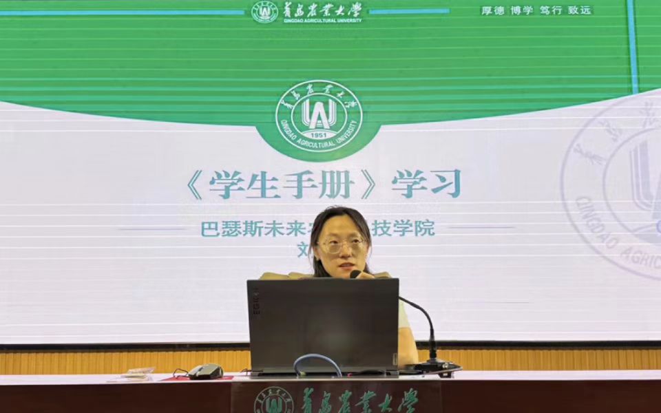 9月6日,太阳成集团tyc122cc在学术会馆第二报告厅举行《员工手册》《学习指导手册》、RAU学业规定、与外教沟通方式专题讲座。公司团委书记刘璐、正科级秘书王继芳、外事秘书张少哲、RAU中国中心驻公司专员李迎分别主讲,讲座由公司辅导员葛得铭主持,2025级全体新生参加。