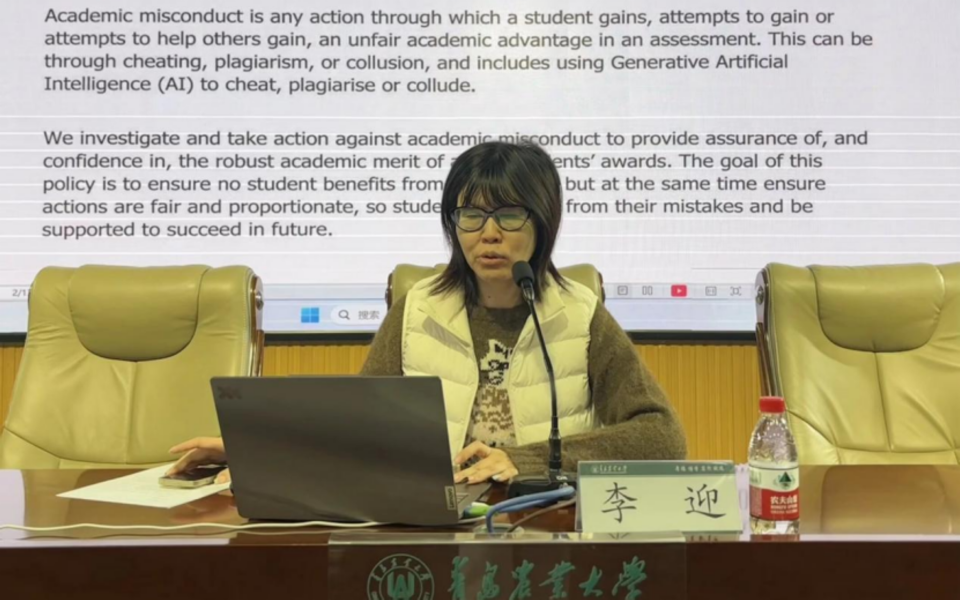 李迎围绕英国皇家农业大学学术不端政策开展专题培训,通过典型案例分析,系统讲解学术规范的重要性,提醒全体员工干部严守学术底线,树立诚信意识,营造风清气正的学术环境。