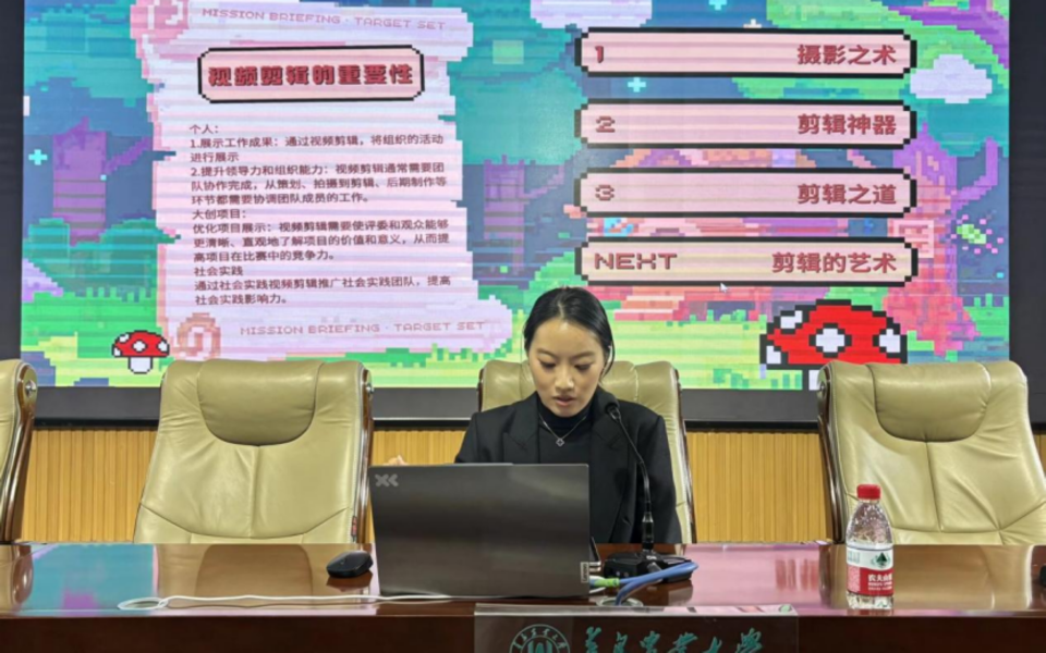 在员工干部经验分享环节,各位员工代表结合自身优势,分模块作经验分享。张晓芮结合自身实践,介绍了PPT制作的技巧与方法;段幸均围绕新媒体运营,分享了内容创作与平台管理经验;来钰颖从项目选题、团队组建和材料准备等方面,交流了大创竞赛的备赛心得;黄睿琪结合新闻写作实践,讲解了校园新闻采写的要点与注意事项;肖潇分享了留学申请的流程与准备经验;厉依琳、王姿懿结合自身保研经历,从学业规划、材料准备及面试技巧等方面进行了详细介绍。各位代表的分享干货满满,为全体员工干部提供了可借鉴、可落地的实践经验。