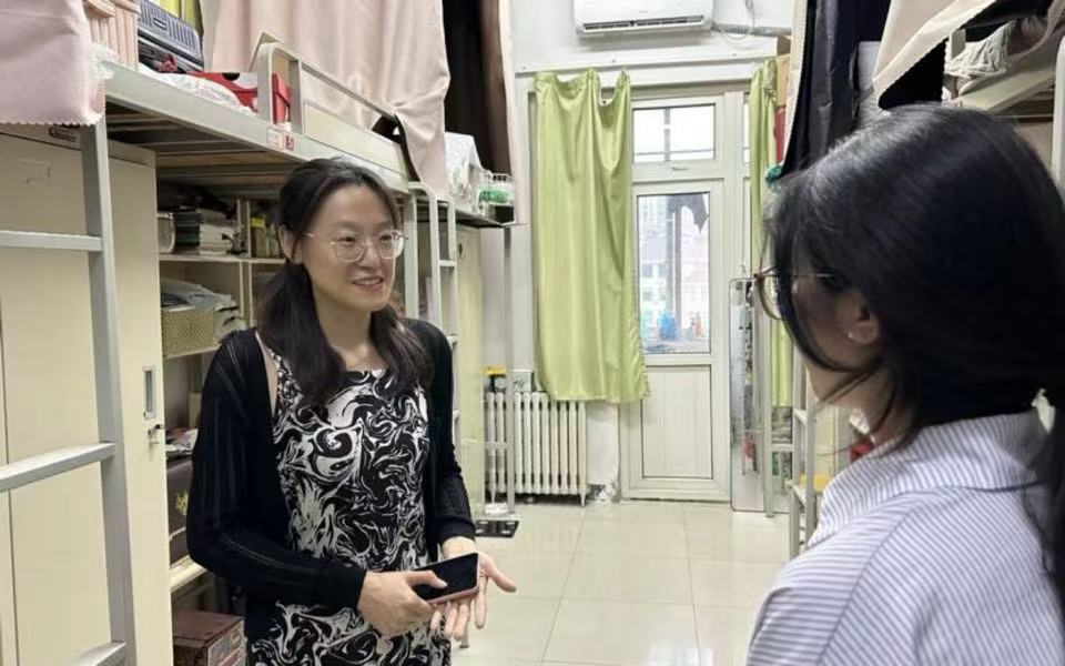 走访期间,刘焕奇、刘璐带领辅导员逐间进入宿舍,细致查看住宿环境,亲切与员工交流,详细询问返校后的生活需求与适应情况。刘焕奇叮嘱员工,要尽快调整作息节奏,端正学习生活心态,强化自我管理意识,提升自我规范、自我监督与自主发展能力;同时要养成良好卫生习惯,保持宿舍内务整洁有序,共同营造安全、舒适、温馨的居住环境。