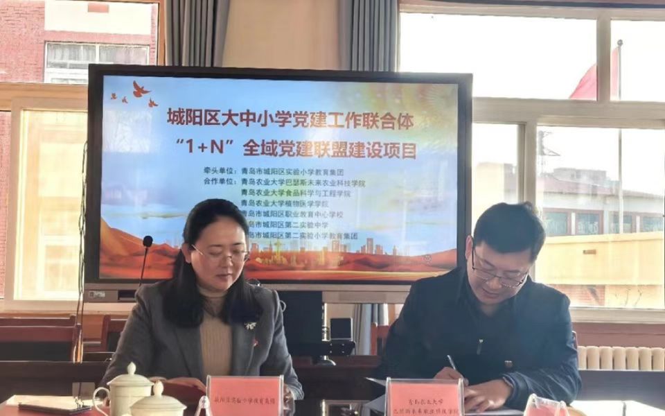活动过程中,许大伟代表公司党委与城阳区实验小学党总支签订联建协议,正式确立共建合作关系,围绕组织联建、活动联办、资源联用等核心内容,深入商讨联盟章程及项目实施方案,共话协同育人的合作愿景。随后,为城阳区实验小学“城阳区大中小学‘1+N’全域党建联盟建设项目”揭牌。活动结束后,参会人员共同前往“张式瑞文明实践站”“尚美家庭教育服务站”参观学习。
