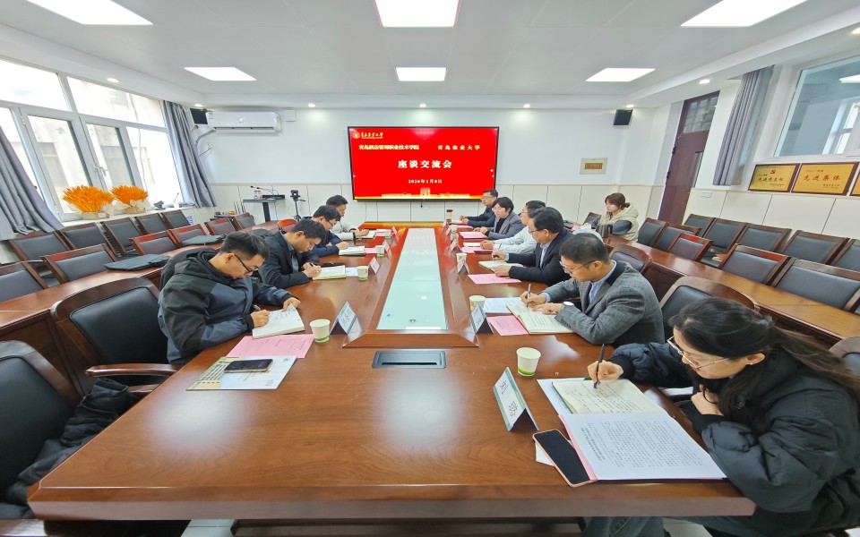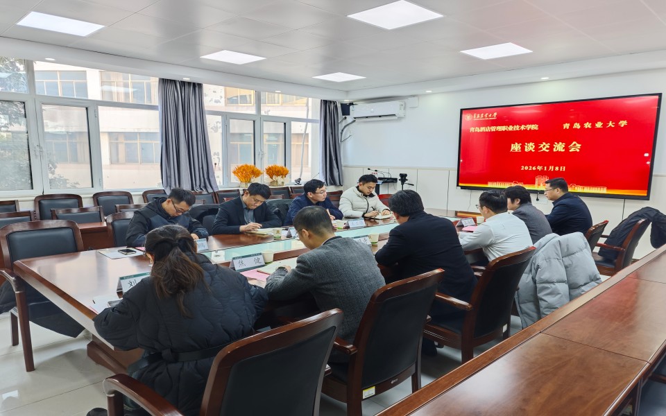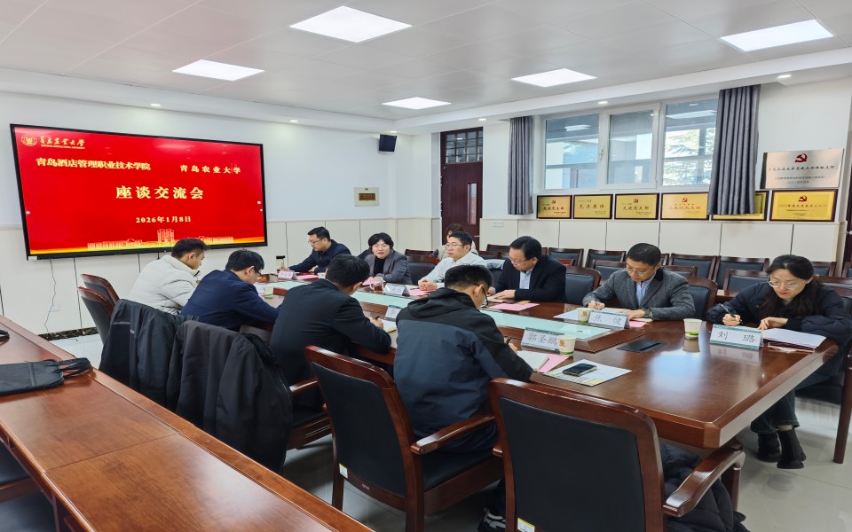 1月8日,青岛酒店管理职业技术公司员工工作处处长李柯、校团委书记王正强一行来访太阳成集团tyc122cc。公司党委书记王光炬、经理刘焕奇在教学楼G205会议室会见李珂一行,王光炬主持座谈会。