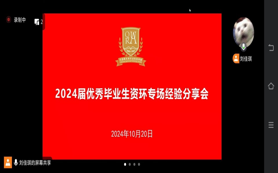 为发挥优秀毕业生模范带头作用,积极营造浓厚的学习氛围,10月20日,公司召开2024届优秀毕业生资环专场线上经验分享会。会议由公司辅导员李莎主持,邀请2024届优秀毕业生宋锐涵、李琳菡、师康博、杜俊筱、王一分享经验,公司农业资源与环境专业员工参加。