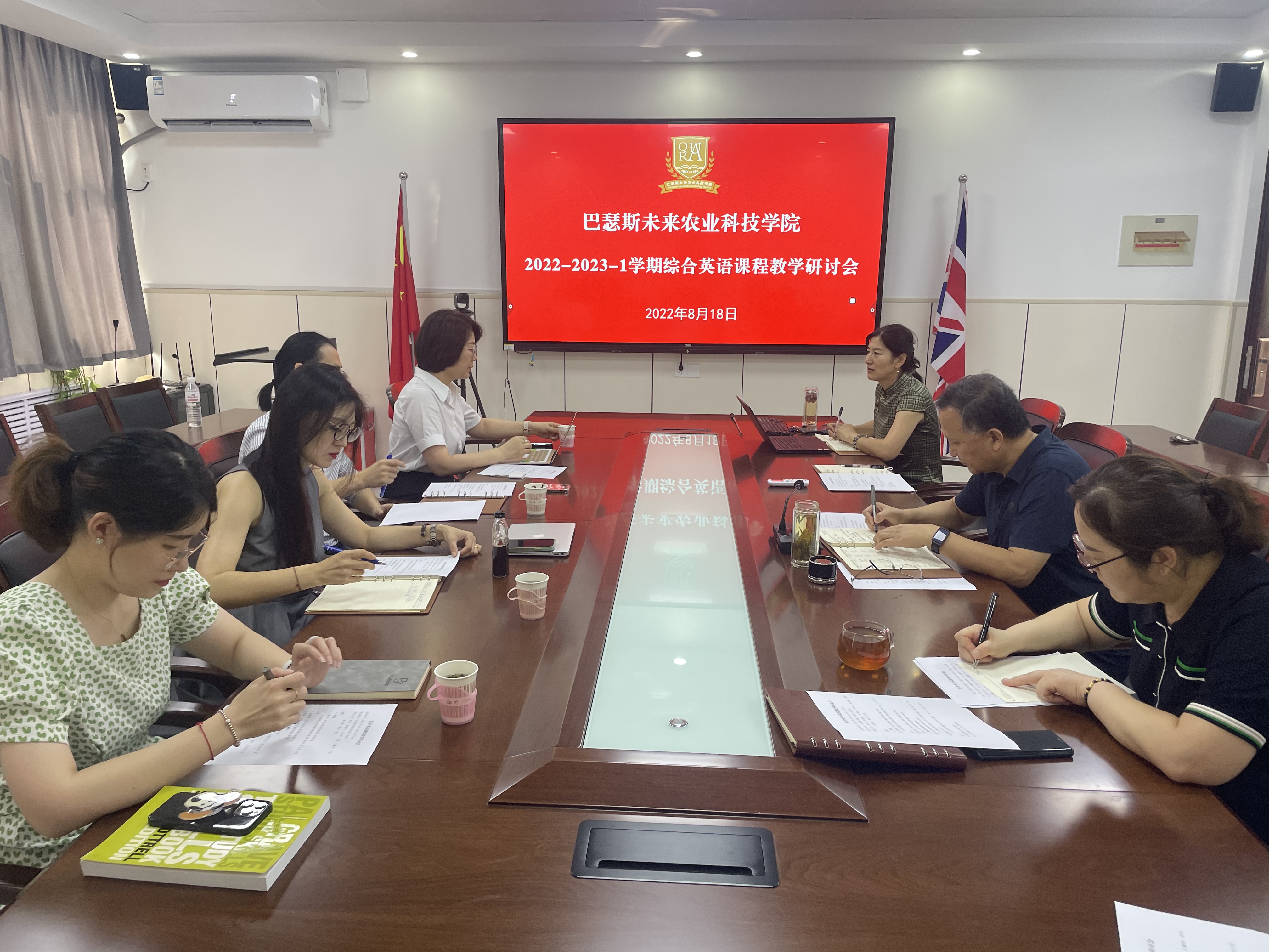 为加强公司教学管理,提高公司产品质量水平,8月18日,太阳成集团tyc122cc于教学楼G205召开综合英语课程教学研讨会,公司经理郑丹、副经理陈海华、正科级秘书王继芳、RAU中方专员李迎、综合英语团队姜伟、张莎莎等人员参加本次会议。